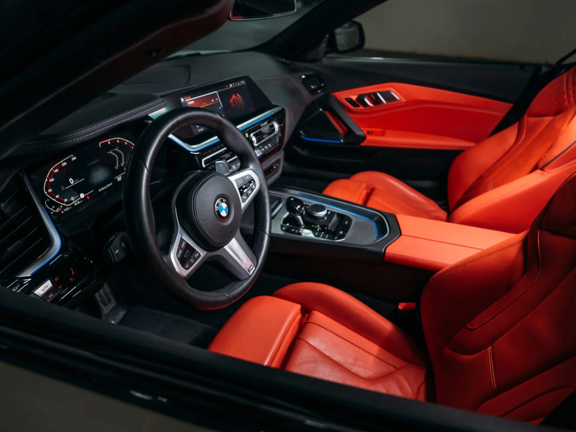 Under the hood, the BMW Z4 offers a 2.0L or 3.0L TwinPower Turbo engine (depending on the model), delivering smooth acceleration and sharp cornering, paired with an 8-speed automatic transmission and rear-wheel drive. The retractable soft top opens in seconds, making it perfect for sunny days and evening drives.