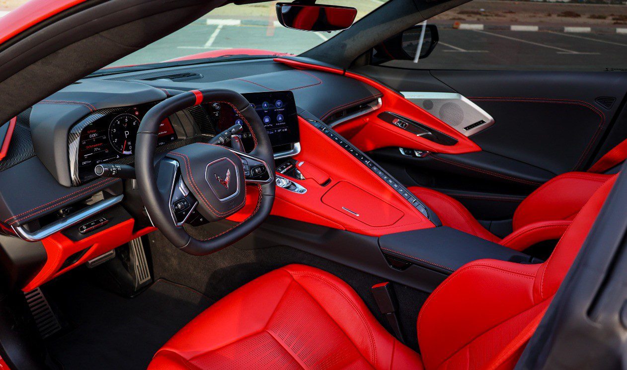 Inside, the Corvette features premium leather seating, driver-focused controls, and cutting-edge infotainment, making it as comfortable as it is powerful.