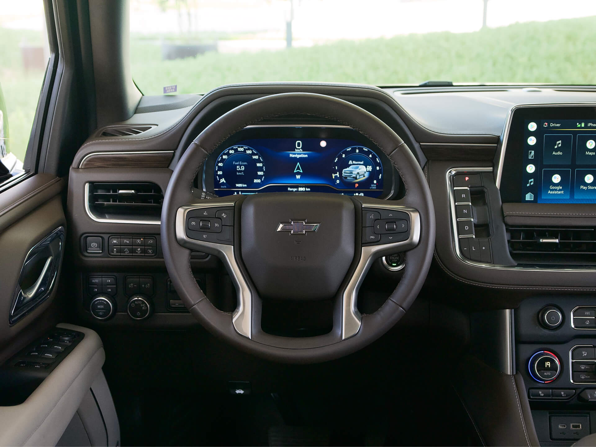 Inside, the Tahoe offers advanced infotainment, leather seating, and excellent ride comfort, making long journeys smooth and enjoyable.