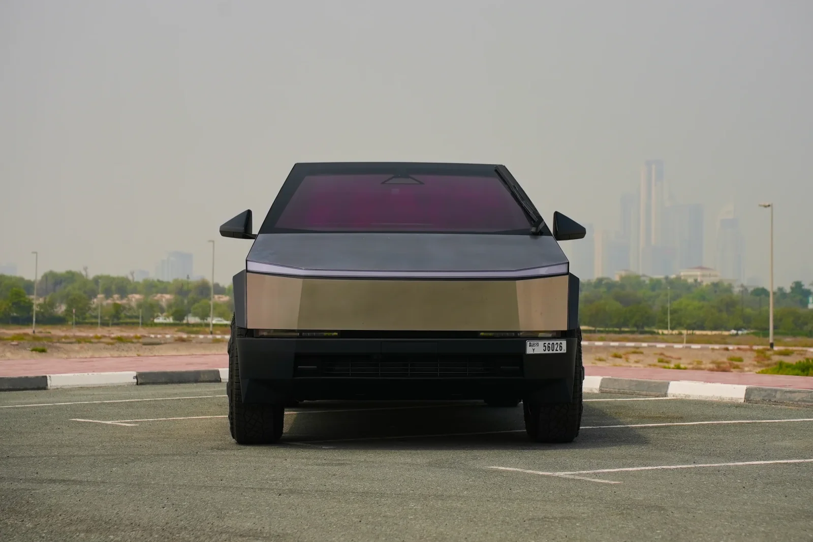 Literally anywhere in Dubai — the Cybertruck draws crowds everywhere. JBR and Marina for maximum visual impact. Al Qudra desert roads where the electric all-wheel-drive and air suspension tackle sand. Sheikh Zayed Road for the surreal experience of a spaceship-like truck cruising among supercars. Downtown Dubai past the Burj Khalifa for the ultimate future-meets-future photo.